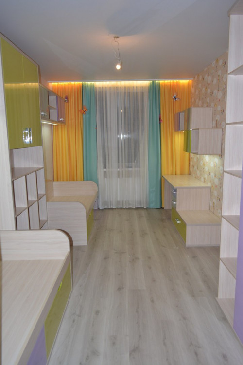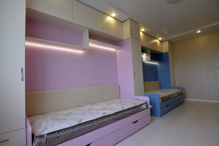 То, сколько мебели будет в помещении и какой тип мебели Вы выберете, зависит от метража комнаты. Впрочем, даже если детская достаточно просторная, много элементов мебели в ней быть не должно. Лучшим вариантом для экономии пространства будет секционная мебель, а также различные трансформеры. Кресла-кровати или двухъярусные кровати со встроенным внизу игровым столом станут отличным решением для детской.