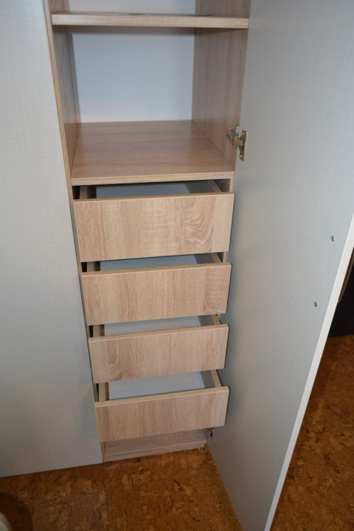 Ящики и дверцы мебели должны легко открываться и закрываться, а крепления должны быть выполнены из металла. От пластика лучше отказаться, поскольку он не такой надежный в плане прочности.